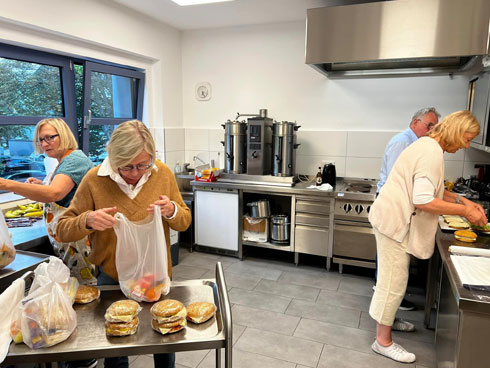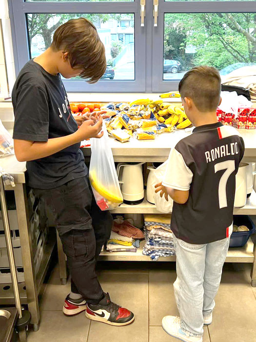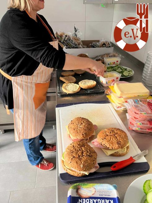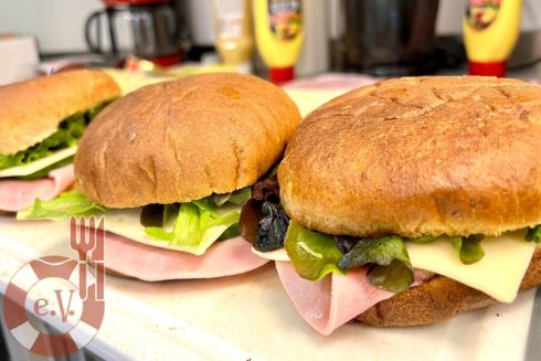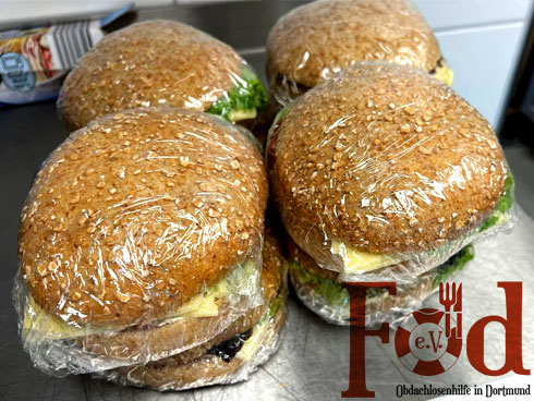 Für heute haben wir leckere Burger-Sandwiches gebastelt und mit weiteren tollen Zugaben wie Obst, Müsliriegel, Eiern und Getränken in Food-Bags verwandelt, die Rüdiger von Hand in Hand e.V. wieder mit seinem Team an Bedürftige verteilen wird.