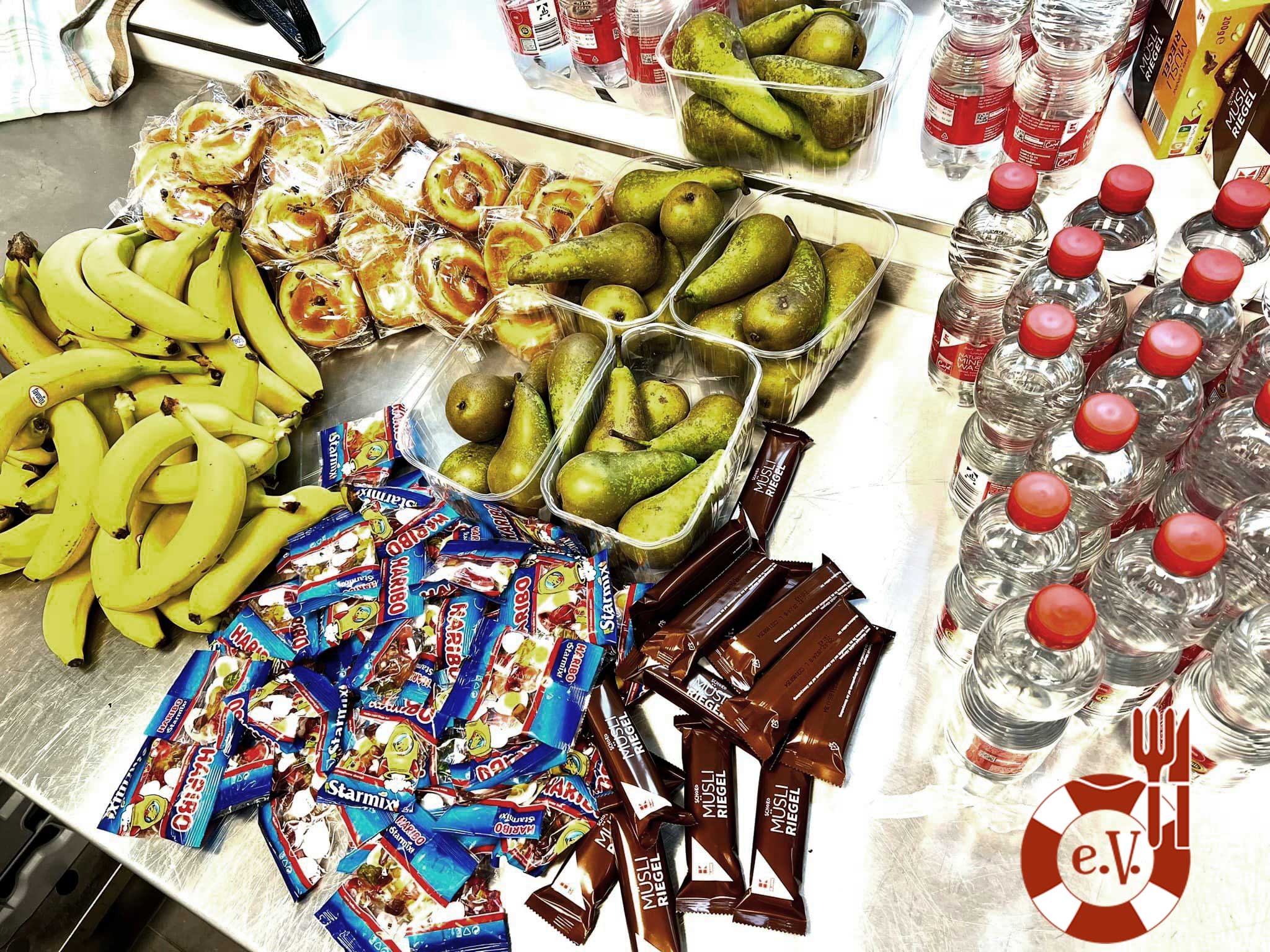 Mit selbstgemachten Sandwiches, Bananen, Äpfel, Müsliriegel und Getränke, haben wir schöne Tütchen zusammengestellt. Rüdiger und sein Team von Hand in Hand e.V. werden diese morgen in der Innenstadt und Umgebung an bedürftige Personen verteilen.