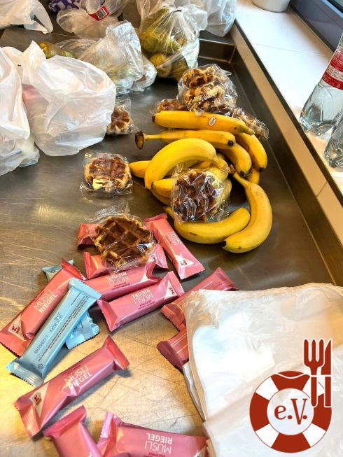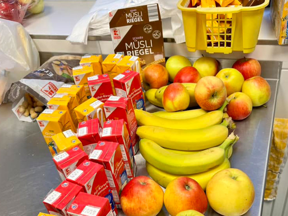 Mit selbstgemachten Sandwiches, Bananen, Äpfel, Müsliriegel und Getränke, haben wir schöne Tütchen zusammengestellt. Rüdiger und sein Team von Hand in Hand e.V. werden diese morgen in der Innenstadt und Umgebung an bedürftige Personen verteilen.