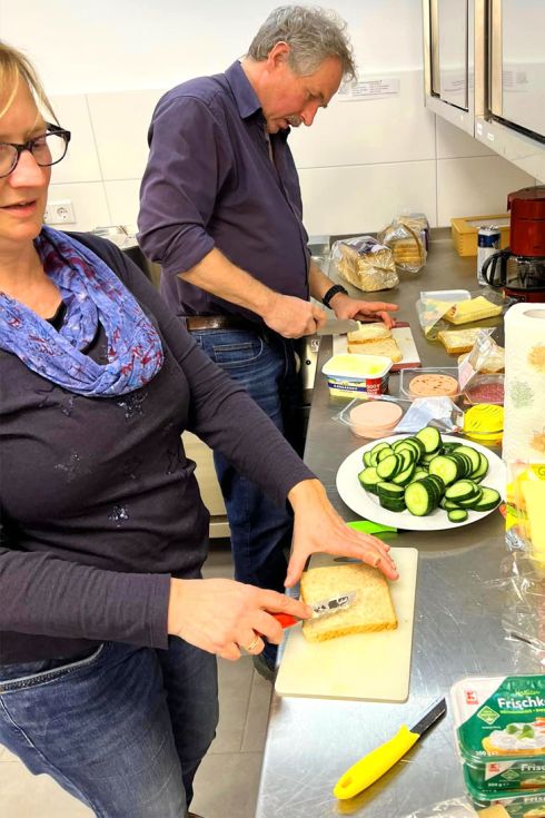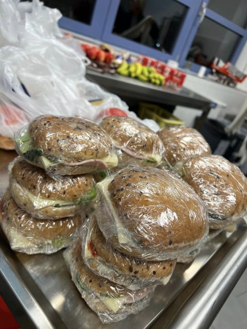Für heute haben wir leckere Burger-Sandwiches gebastelt und mit weiteren tollen Zugaben wie Obst, Müsliriegel, Eiern und Getränken in Food-Bags verwandelt, die Rüdiger von Hand in Hand e.V. wieder mit seinem Team an Bedürftige verteilen wird.